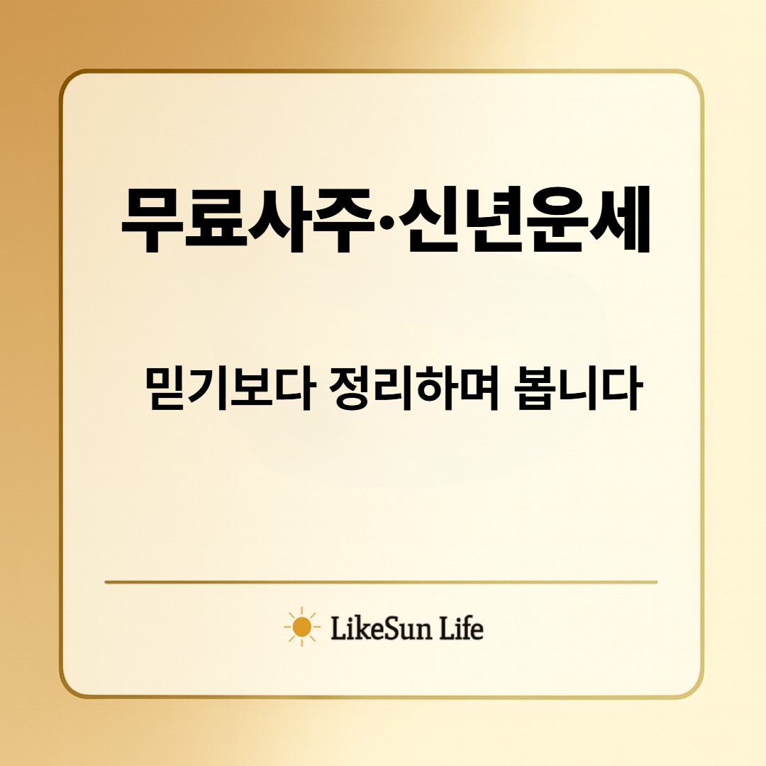 새해가 가까워지면무료사주나 신년운세를 한 번쯤 찾아보게 되는 분들이 많아요. 가볍게 참고하려고 봤는데읽고 나서 오히려 마음이 더 복잡해지는 경우도 있고,괜히 신경이 쓰여 하루 종일 머릿속에 남아 있기도 합니다. 그래서 이 글에서는무료사주와 신년운세를 믿느냐, 안 믿느냐의 문제보다는어떻게 보면 덜 흔들리는지에 대해 정리해 보려고 합니다. 무료사주와 신년운세를 찾게 되는 이유 무료사주나 신년운세를 보는 이유는대부분 비슷한 경우가 많아요. 앞으로의 … Read more